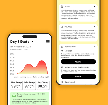 While working as the sole UX/UI designer at Trans Vitals Pvt. Ltd., I led the design of a temperature monitoring medical patch app aimed at transforming how people track and manage their health. Designed for individuals with limited access to healthcare or chronic conditions like TB and jaundice, the app offers a unique blend of fun, gamified interactions and actionable health insights.